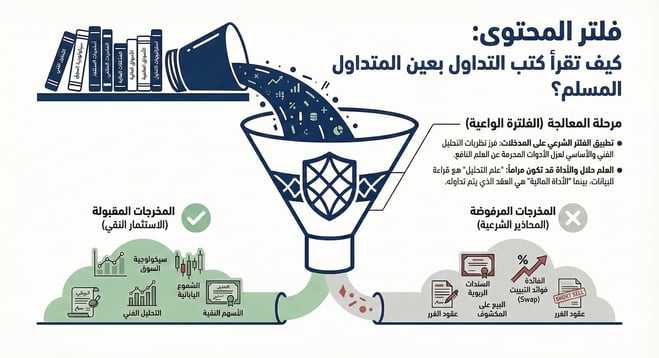 أغلب الكتب المذكورة في هذه القائمة (مثل كتب ميرفي، إلكسندر إلدر، وغيرهم) كُتبت في بيئة مالية غربية لا تفرق بين الحلال والحرام. بصفتك متداولاً مسلماً، يجب عليك تطبيق "فلتر شرعي" أثناء القراءة.